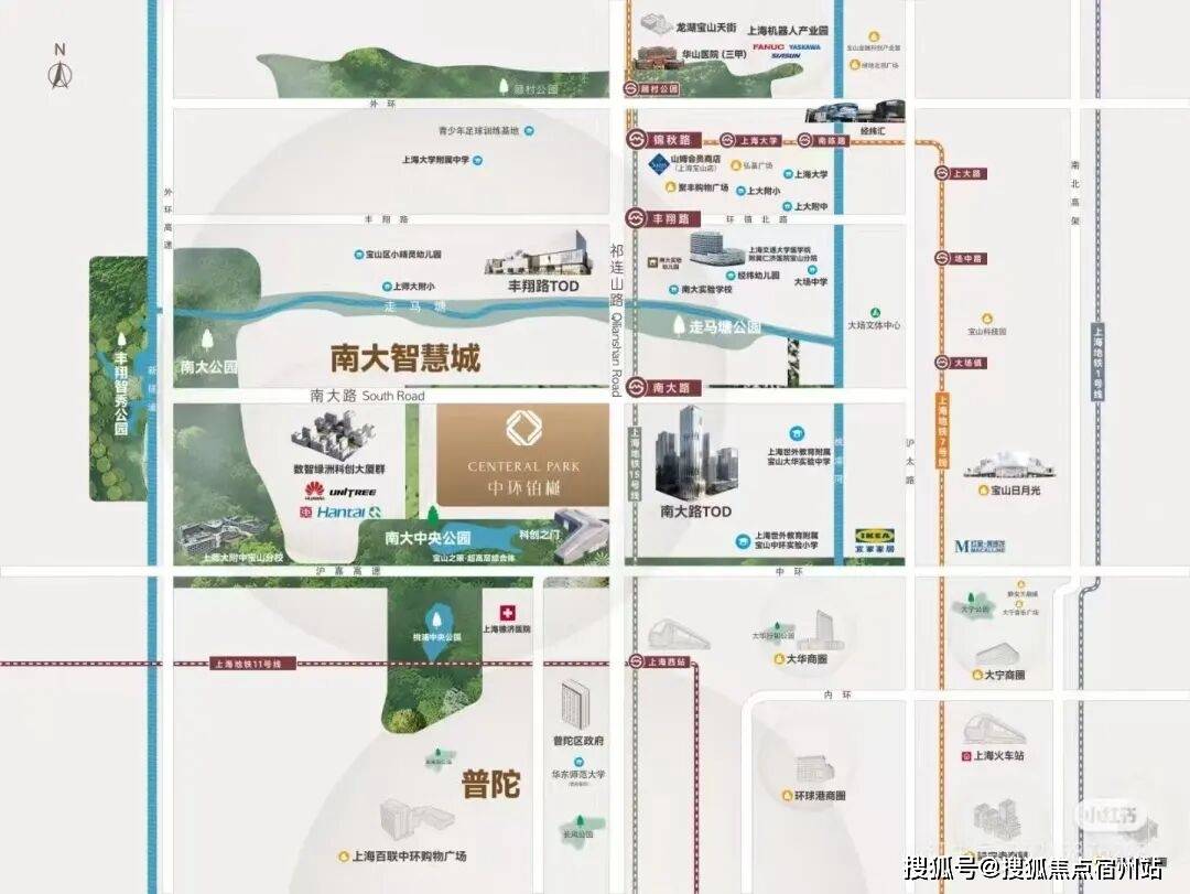 约20万㎡南大中央公园(建设中),紧邻社区500米。建成后与桃浦中央绿地共建的超级绿楔,形成上海中心城区最大连片生态矩阵。