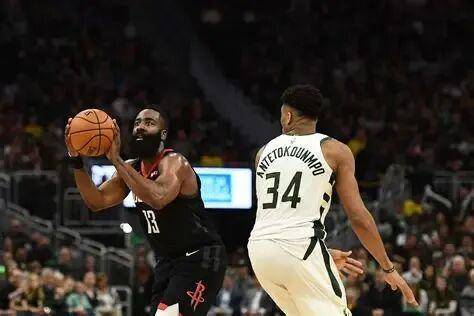 虽然风格迥异,一个是修长狂奔的巨人,一个是撤步三分的挡拆手,但哈登和扬尼斯也有类似处:他俩都是超强的个人突击手,都依靠射手群拉开空间,都根据规则开发出了奇异的步伐。