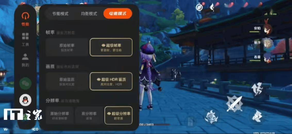 不仅如此,一加 13T 还支持《原神》原生级 120 帧+1.5K 满血同开 —— 这里的 120 帧是原生级的,支持帧率软件检测。如下图所示,在《原神》游戏中,侧滑呼出游戏助手,找到“超级帧率”即可开启。