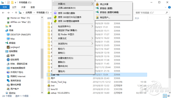 这个较之前的两部简单,只要鼠标右键点击要共享的文件,在右键菜单中选择共享就行了。之前设置的电脑IP地址可以在电脑文件管理器的地址栏中直接访问,输入电脑A的地址192.168.1.2回车就能直接看到电脑A分享的文件了。其实,不用输入地址也行,在资源管理器的左侧边栏中就能找到同一局域网中的所有电脑,双击局域网的电脑进入就能看到分享的文件。